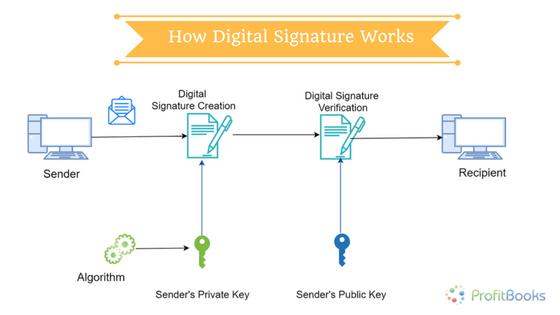 Bức ảnh trên đã mô tả khá rõ cách làm việc của chữ kí điện tử, các bạn có thể hiểu đơn giản là bạn có 2 chiếc khóa: một public mà ai cũng biết là bạn là chủ của nó, cái thử 2 là private mà chỉ bạn biết và giữ. Bạn sẽ dùng chiếc khóa private để tạo ra một chữ kí số cho một thông tin muốn gửi đi và chuyển nó cho người nhận, khi người nhận nhận được thông tin đó, họ có  thể xác định được bạn có phải là người gửi đi thông tin đó không nhờ sử dụng  chữ kí số mà bạn đã gửi cho họ, với  bộ đôi là thông tin nhận được và chữ kí số, chúng  có thể dễ dàng xác định ngược lại cái public key của bạn (Đây  cũng là nguyên  lý xác định địa chỉ gửi và nhận trong mạng lưới Bitcoin)