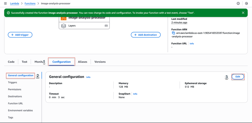{ "bucket": "your-image-analysis-bucket", "prefix": "batch-images/" }- Click "Test" để chạy batch processing