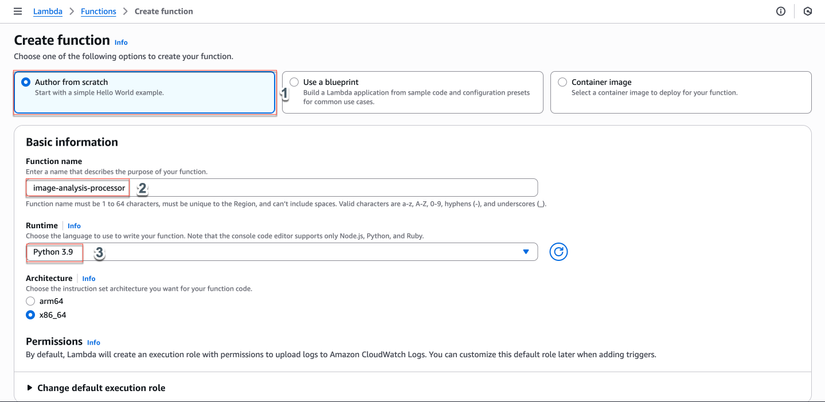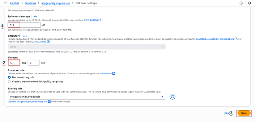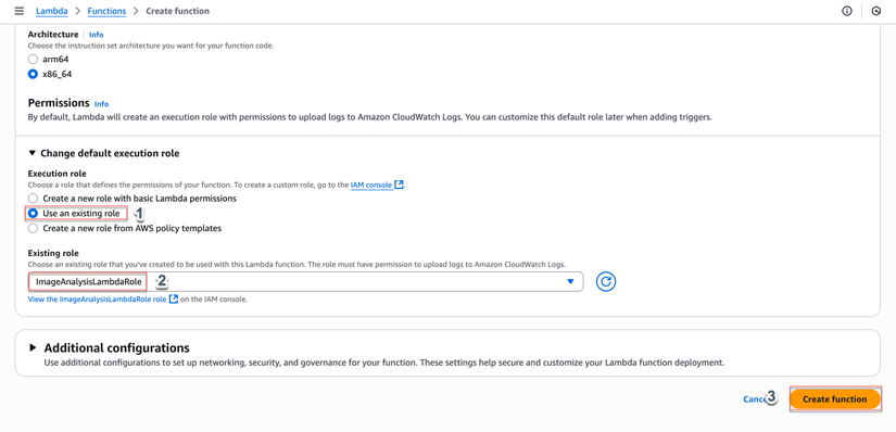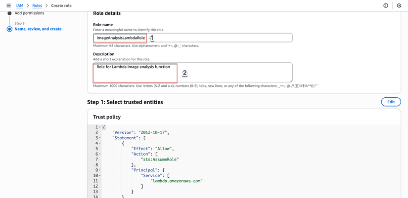ImageAnalysisLambdaRole - Description: "Role for Lambda image analysis function"