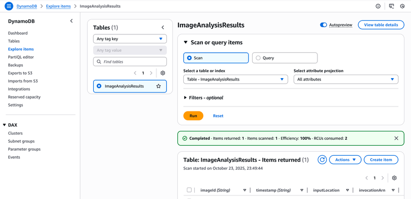 ImageAnalysisResults - Tab "Items" để xem các record đã được tạo