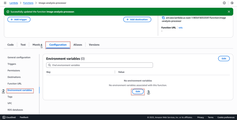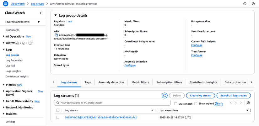 /aws/lambda/image-analysis-processor - Click vào log stream mới nhất để xem logs