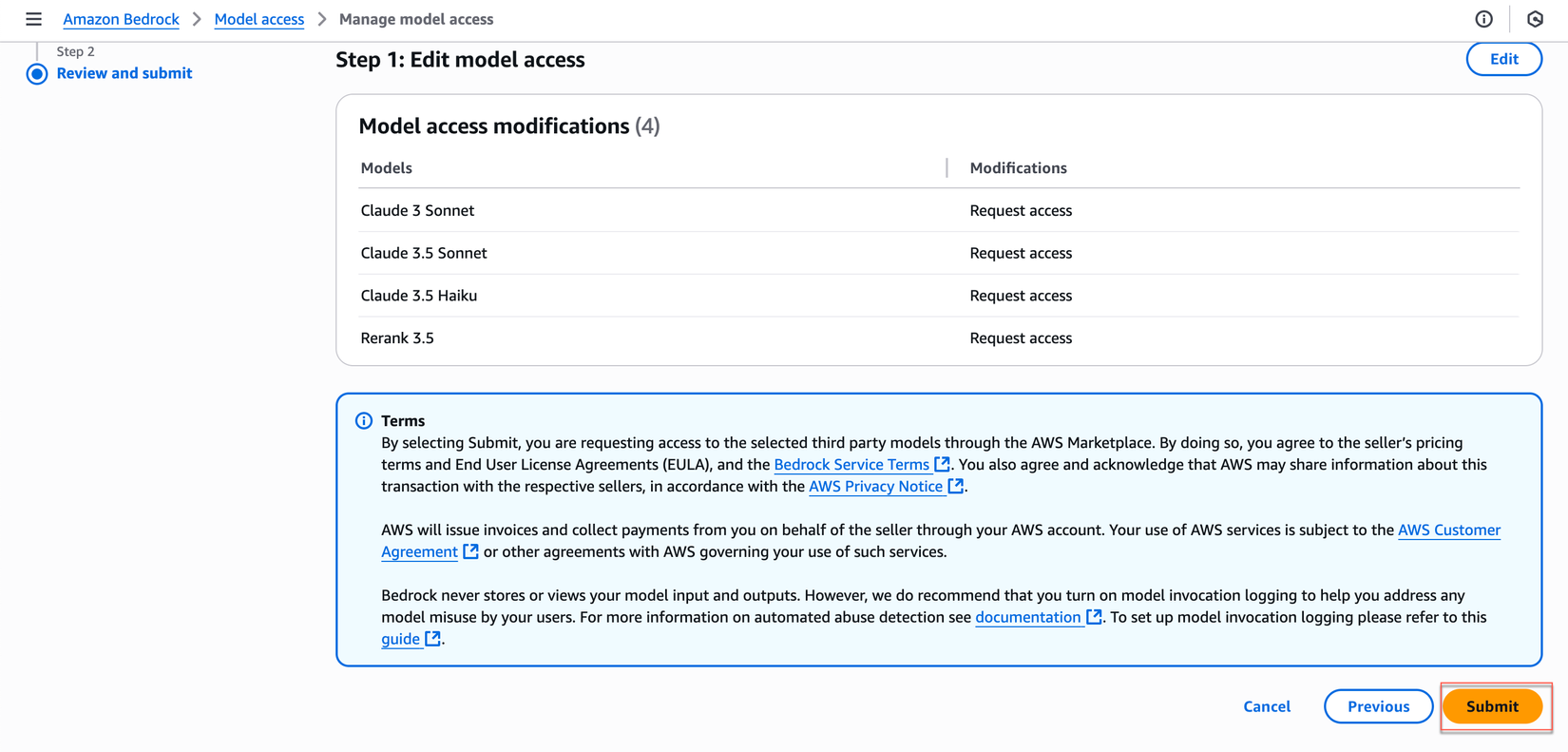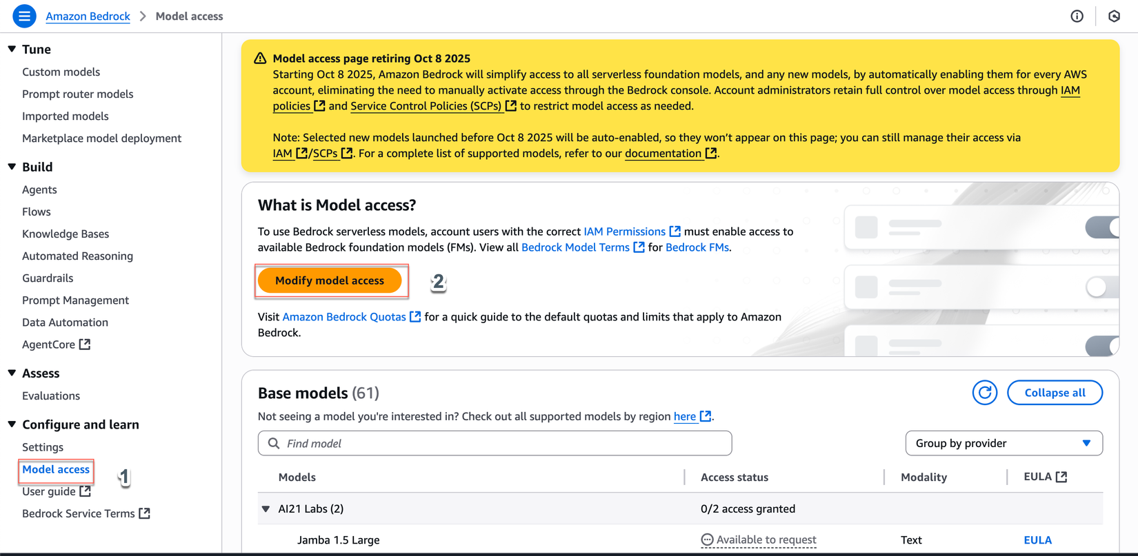 ⚠️ Quan trọng: Đây là bước bắt buộc trước khi sử dụng Amazon Bedrock Data Automation. Nếu không enable model access, BDA sẽ không thể xử lý ảnh.