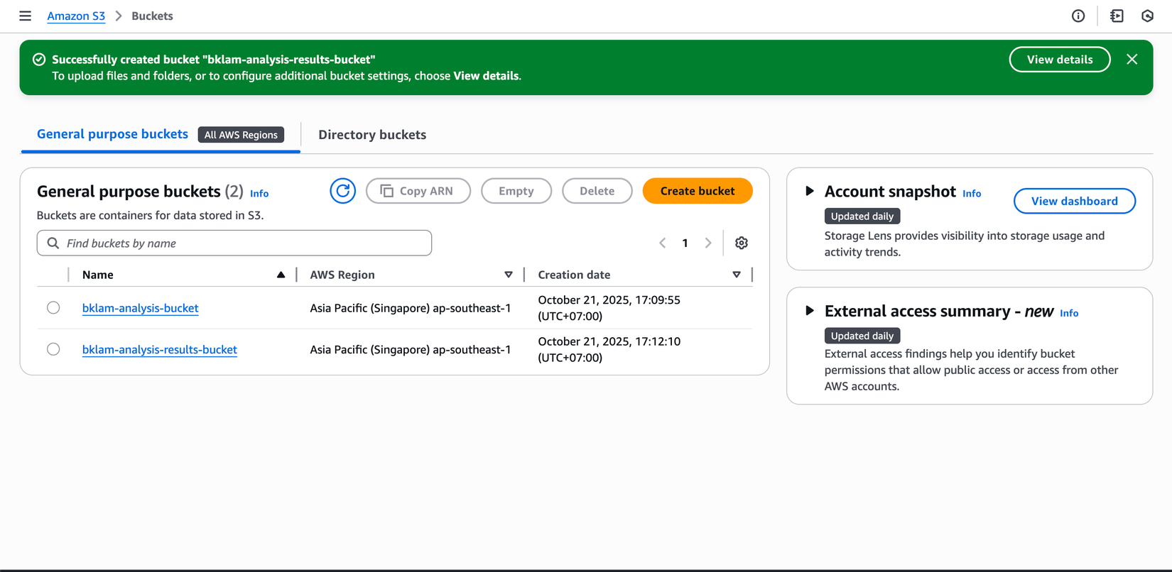 - Amazon S3: Lưu trữ ảnh gốc và kết quả phân tích