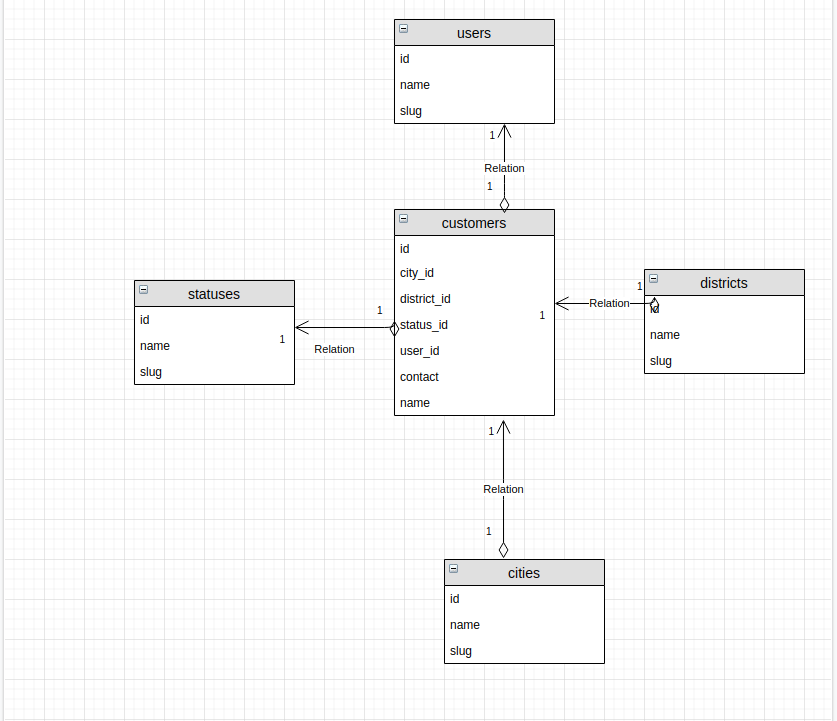 Như trên sơ đồ có vẻ các bạn đã thấy mình tách các bảng có quan hệ 1-n với nhau. Mục đích là sẽ lưu id của các trường như: city, district, statuses ... để khi truy vấn sẽ dễ dàng hơn.