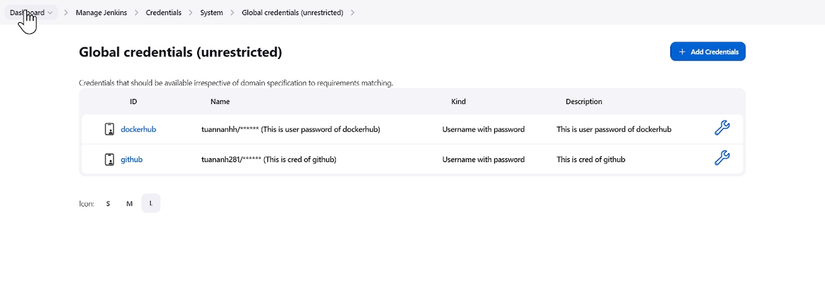 Sau khi fork 2 repo đó về, mọi người hãy chỉnh sửa một vài thông tin trong 2 Jenkinsfile trên cả 2 repo cho khớp vs thông tin mọi người tạo credentials trên Jenkins nhé