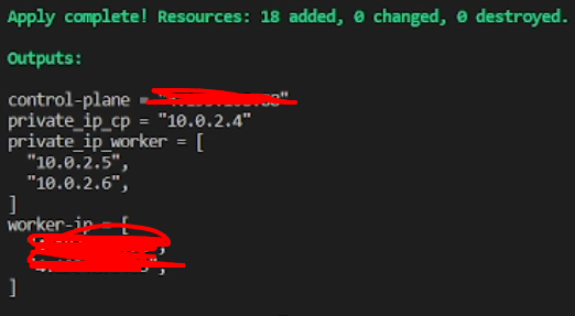 Sau khi khởi tạo các resource xong, nó sẽ output ra thông tin IP của các VM: