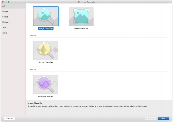 Sau khi đã khởi động được CreateML đến chúng ta sẽ: