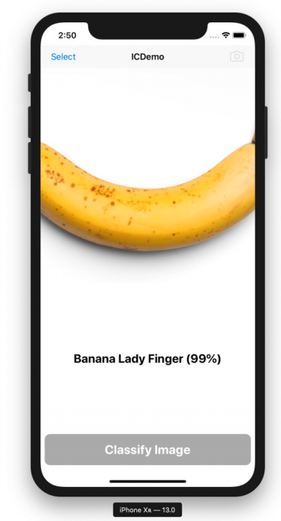 Bây giờ bạn có thể khởi chạy ứng dụng bằng simulator. Bạn có thể chọn một hình ảnh (hoặc chụp ảnh nếu bạn đang chạy nó trên một thiết bị thực), thấy hình ảnh đã chọn trong chế độ xem hình ảnh, sau đó bấm vào nút Classify image để yêu cầu mô hình phân loại. Bạn sẽ thấy label sẽ cập nhật với dữ liệu mô hình trả về cho bạn.