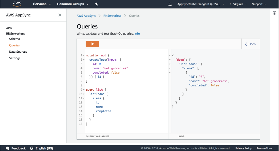 AWS Amplify đưa ra một client tên là GraphQL có thể hoạt động với bất kì GraphQL API nào. Trong trường hợp của chúng ta, hãy nhìn vào AWS AppSync đã được quản lý bằng dịch vụ GraphQL.