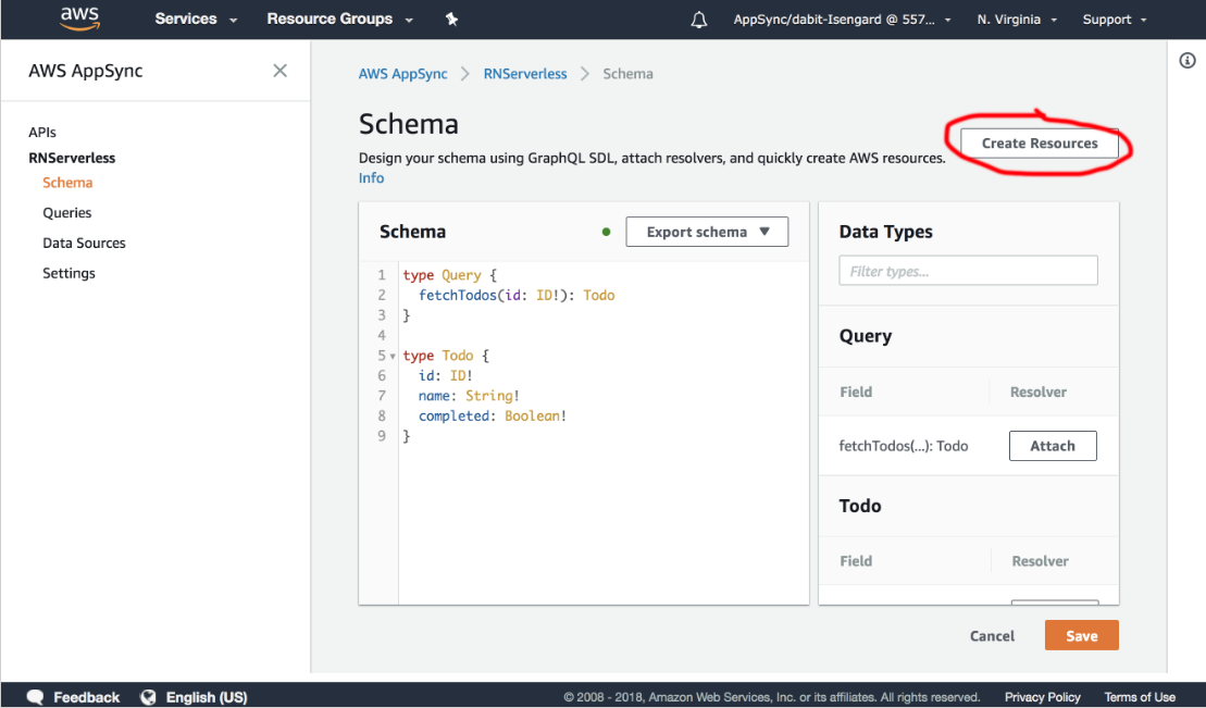 Create Resources sẽ tự động cấu hình một DynamoDB database, thêm vào GraphQL Schema cho nhiều tiến trình bao gồm query, mutation, subscription và resolver mà kết nối tiến trình GraphQL vào data source.