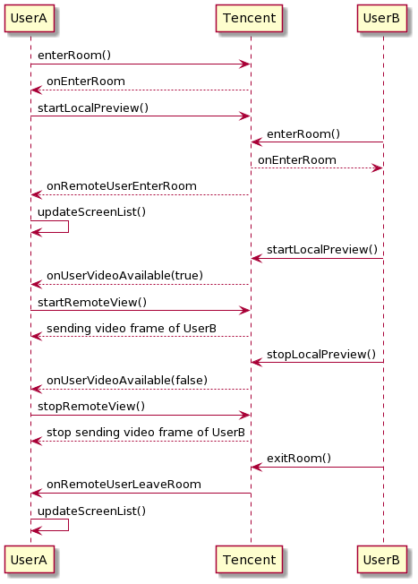 Khi user đã tham gia vào room thì sẽ bắt đầu lắng nghe listener của TRTCCloud. Đây là list các function của TRTC SDK: https://cloud.tencent.com/document/product/647/51530