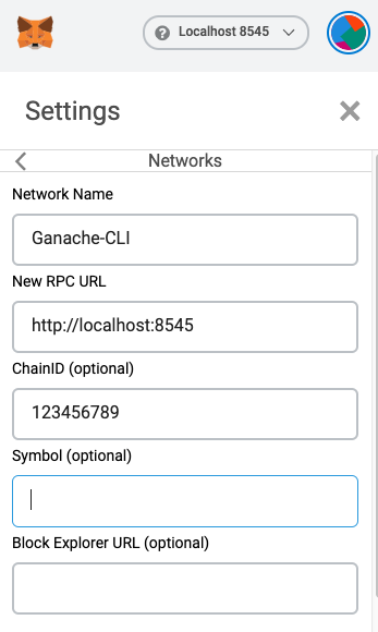 Khi này ta cần check lại network đã setup ở Metamask xem đã đúng local chưa. Nếu chưa đúng ta sẽ phải thêm một Custom RPC như sau: