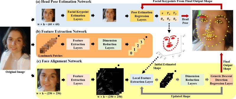 - Sử dụng một pre-defined 3D model, sau đó áp dụng phép đổi trên input image sao cho các điểm toạ độ trên khuôn mặt (mắt, mũi, miệng, mắt, cằm...) ở không gian 2D khớp với các điểm này ở không gian 3D của mô hình..etc.