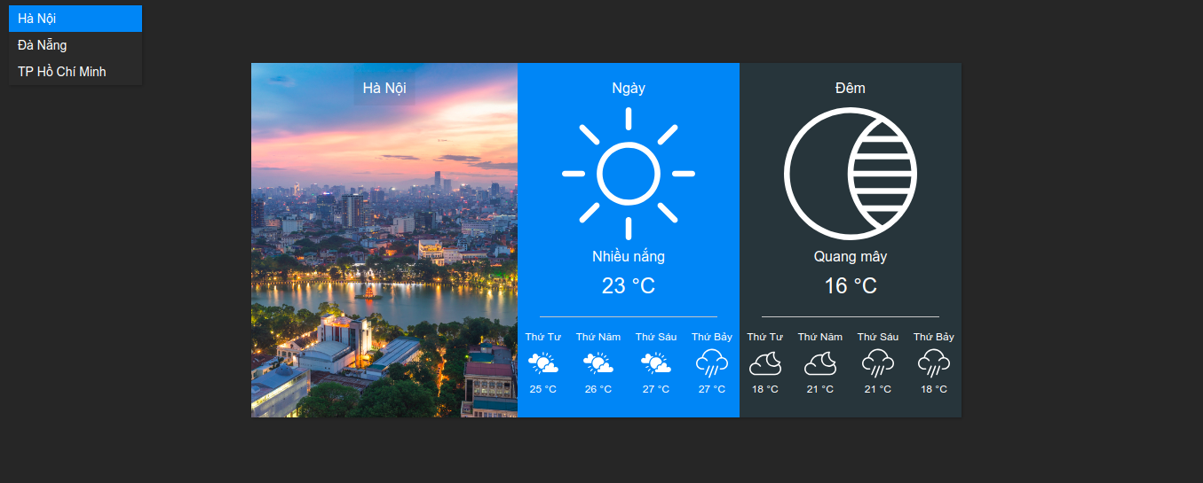 Tiếp theo mình sẽ thêm chức năng cho phép chọn thành phố: