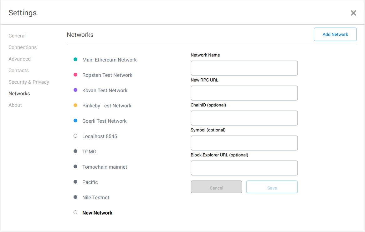 Do là một chain riêng thì để tương tác với nó thông qua metamask thì các bạn cần phải config lại rpc cho nó :