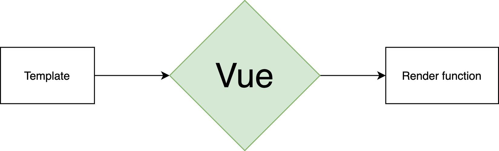Khi template đi đến Vue sẽ được qua một compiler (trình biên dịch) để biến đổi template của chúng ta thành Render function (RF).
