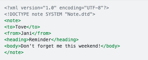 Nội dung file Note.dtd chỉ ra một số ràng buộc nhất định với file .xml. Ví dụ như mỗi note element phải bao gồm những elements khác bên trong nó: to,from,heading,body hay xác định các elements nào phải thuộc loại nào (ở đây là #PCDATA - parsed character data - hiểu đơn giản là data ở dạng text).