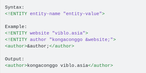 Chúng ta có thể hiểu đơn giản DTD Entity giống như những biến trong lập trình vậy.