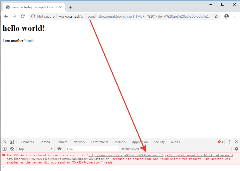 Ban đầu, XSS Auditor loại bỏ những script nguy hiểm theo chế độ mặc định.