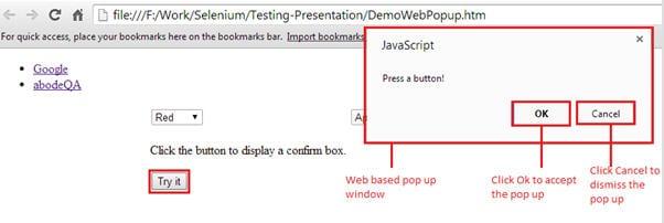 Dưới đây là cách để xử lý popup (sử dụng Web Driver), đầu tiên là đi từ các web-based popup :