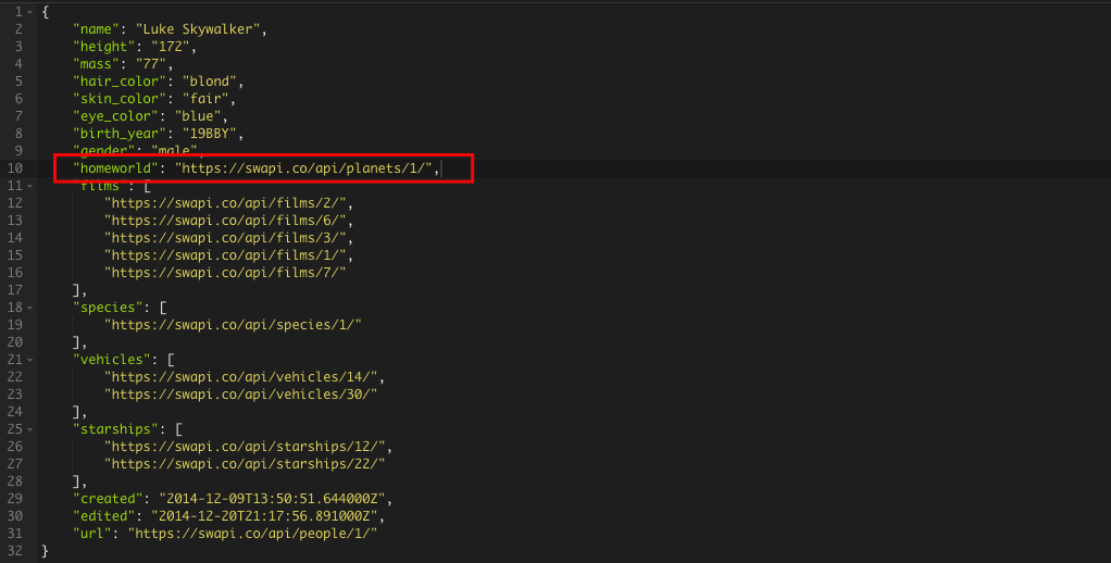 Trong ví dụ tiếp theo, ta sẽ cần lấy thông tin homeworld của một character. Tuy nhiên, để lấy được chúng ta sẽ cần phải lấy được thông tin của character trước, sau đó phải chờ dữ liệu trả về từ API thì lúc này chúng ta mới có dữ liệu cần thiết để tiếp tục lấy được thông tin homeworld. Trong trường hợp này, chúng ta bắt buộc phải gọi tới 2 API endpoints khác nhau và 2 API endpoints này phải được sắp xếp một cách tuần tự.