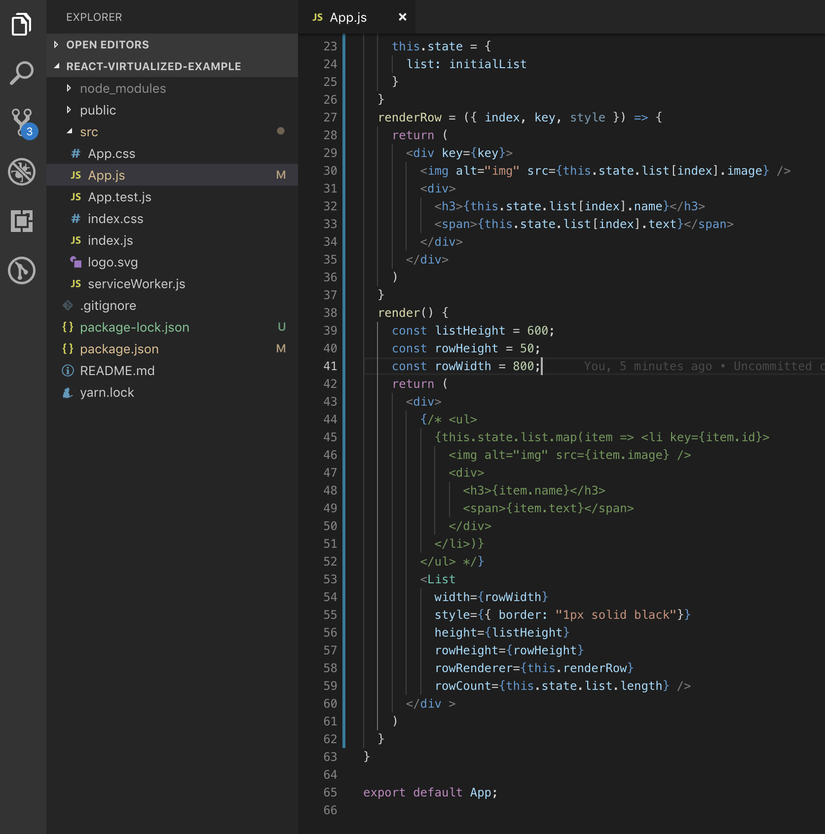 Vậy chúng ta đi vào ví dụ về việc xử lý mảng dữ liệu lớn trong ReactJS và cùng tìm hiểu xem, làm cách nào react-virtualized giải quyết vấn đề đó nhé.