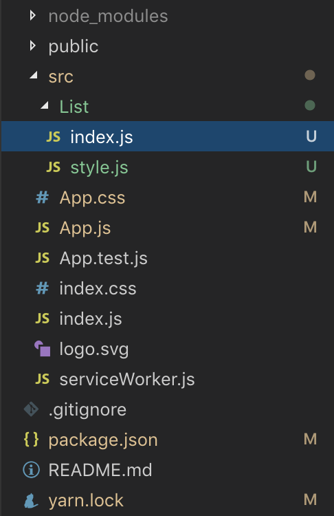 Hiện tại component List ở file index.js trong thư mục List ta chỉ style đơn giản và chưa làm gì cả: