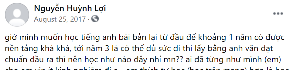 Mình bắt đầu học chăm chỉ hơn, không phải vì điểm số hay cái gì đó phù phiếm. Lúc đó đối với mình không có gì quan trọng ngoài việc học giỏi tiếng Anh nữa. Mình muốn em của mình sau này được hưởng nền giáo dục tốt, mình muốn mọi người xung quanh mình an toàn. Mình muốn có thể kiếm thật nhiều tiền. Và có cái gì đó (trực giác) nói là học tiếng Anh bằng một cách nào đó là một con đường dẫn đến thực hiện những điều đó. Mặc dù mình cũng không biết là nó sẽ dẫn như thế nào, không có gì là rõ ràng cả. Mà cũng không sao, không thể đi bằng mắt thì ta đi bằng trái tim 😇
