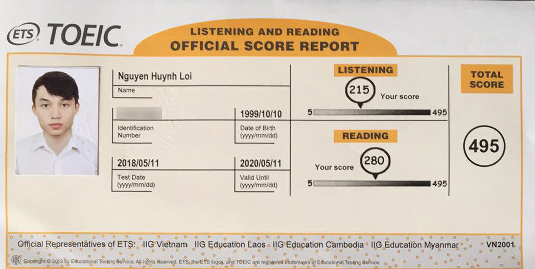 Sau 1 học kì, từ một đứa không thể nghe được 1 video youtube đơn giản nhất, mình đã bắt đầu nghe sơ sơ tiếng Anh và tự học lập trình bằng tiếng Anh được. Và mình không chỉ luyện nghe đọc, mình luyện cả nói và viết. Hết học kì 2 (hết năm nhất), mình đi thi TOEIC và đạt 495 TOEIC, không đạt mục tiêu mình đặt cho năm 3 nhưng mà đủ ra trường 😂.