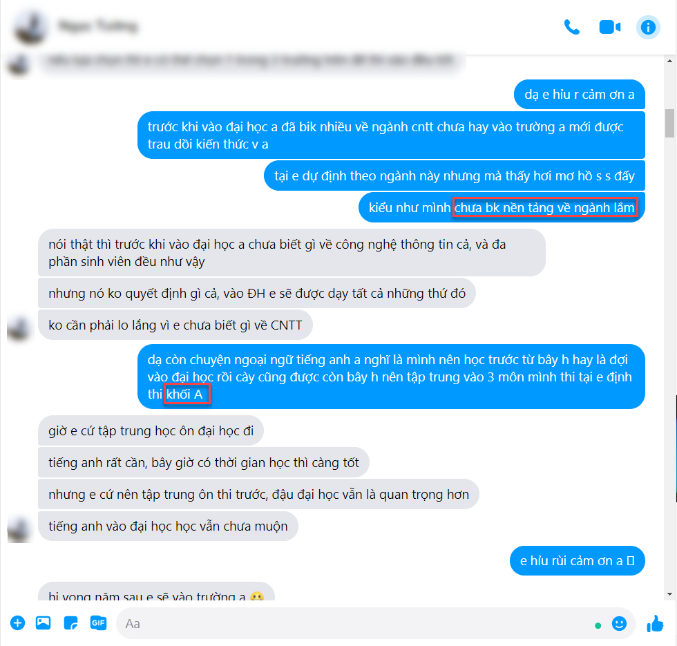 Đây là một đoạn hội thoại mình hỏi một anh học UIT khi mình học lớp 12.