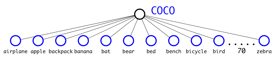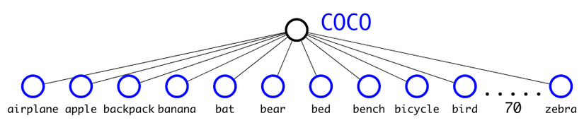Lúc này, có một vấn đề mới xuất hiện, đó là các tập dữ liệu detection chỉ có các đối tượng phổ biến và các nhãn tổng quát, ví dụ như “chó”, “người”, “thuyền”. Ví dụ như tập dữ liệu COCO bên dưới với 80 class mang ý nghĩa chung: