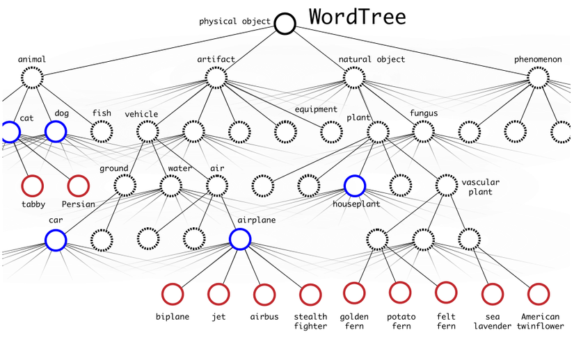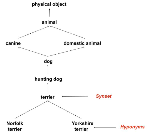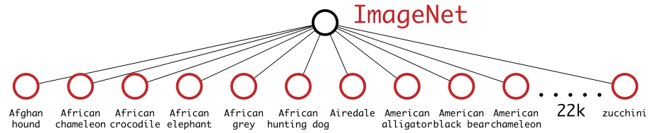 Các nhãn của tập dữ liệu ImageNet được lấy từ WordNet - một cơ sở dữ liệu ngôn ngữ dùng để cấu trúc hóa các khái niệm và mối quan hệ của chúng với nhau. Trong WordNet, “Norfolk terrier” và “Yorkshire terrier” đều là hạ vị (hyponym - một từ có ý nghĩa cụ thể hơn và nằm bên trong nghĩa của một từ khác) của “terrier” - là một thể loại trong “hungting dog” - là một thể loại của "dog".