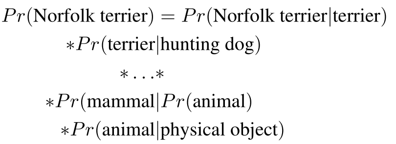 Để thực hiện việc phân loại trên WordTree, ta dự xác suất của một đối tượng dựa vào tích của các xác suất có điều kiện, đi từ node đó đến root node (ta giả sử bức ảnh chứa vật thể nên Pr(physical object) = 1). Ví dụ: