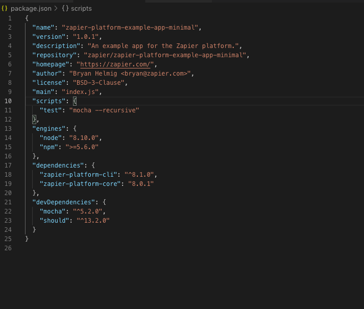 Tất cả các ứng dụng Zapier CLI được chạy bằng Node.js v8.10.0.