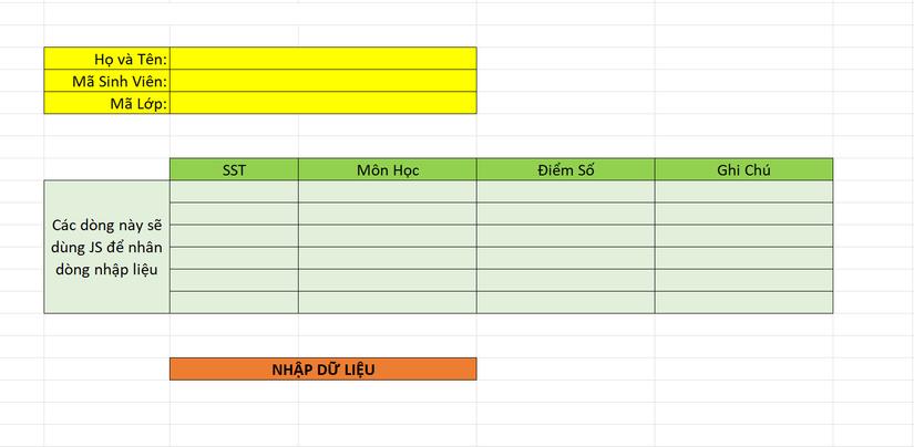 Các dòng này sẽ dùng JS để nhân dòng nhập liệu SST - Môn Học - Điểm Số - Ghi Chú