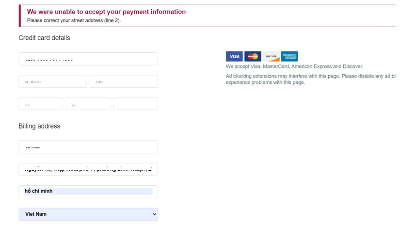 Em đã thử hết nhưng không được chấp nhận thanh toán ạ , có bác nào làm quen mảng này biết thì làm ơn giúp em với nhé em cám ơn ạ