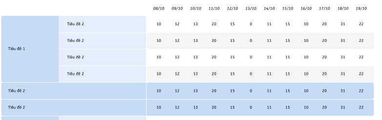 Chào mọi người mình đang muốn dựng 1 table với UI và data hiển thị như hình vẽ nhưng đang gặp khó. Cho mình hỏi là có thư viện nào hỗ trợ việc dựng UI cho table dạng kiểu như này không ạ (Vuejs)? Hay code tay cái table này như thế nào ạ? Mình cảm ơn