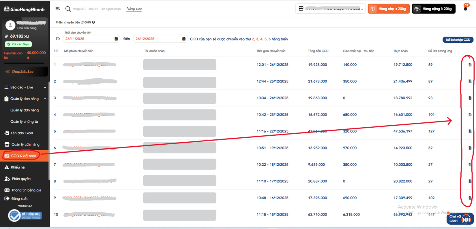 Lấy dữ liệu giao dịch đối soát ví và giao dịch xu của Giao Hàng Nhanh thông qua GHN API