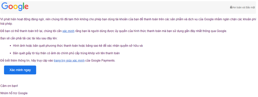 Mình đã khai báo phương thức thanh toán là thẻ Visa nhưng hết lần nay đến lần khác Google yêu cầu verify thông tin thanh toán(kể cả đã gửi thông tin căn cước)