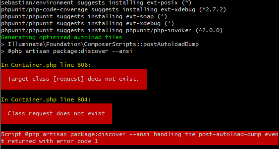 Các bác cho hỏi e có clone pjorect về chạy composer install thì báo lỗi này. Tìm chỗ gọi đến cái class request kia thì không thấy.