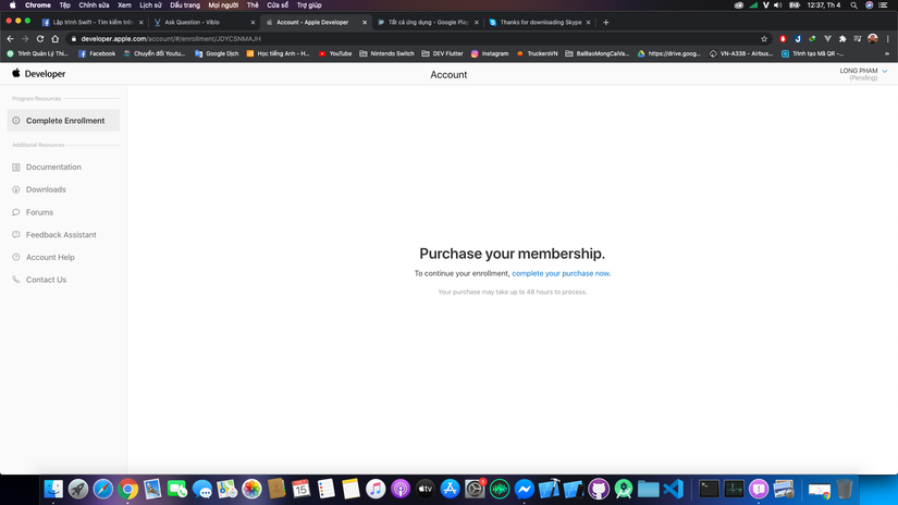 thanh toán tài khoản Apple Developer lâu