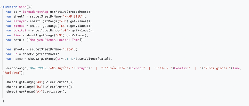 Em có viết đoạn code để gửi thông tin từ gg sheet qua tele gram. Kết quả thì tạm ổn, nhưng ở phần hiển thị thời gian nó nhảy thêm các thông tin không cần thiết