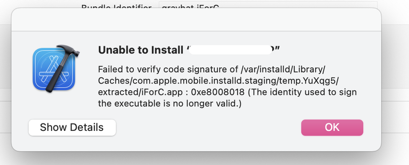 tất cả các chứng chỉ và provisioning profile của em đều hợp lệ và còn hạn, nhưng em không thể build app từ XCODE qua iPhone thật được , nhưng e có thể build để up lên Testflight và AppStore được ! Mọi người có thể giúp em khắc phục lỗi này được không ạ , em cám ơn rất nhiều ạ