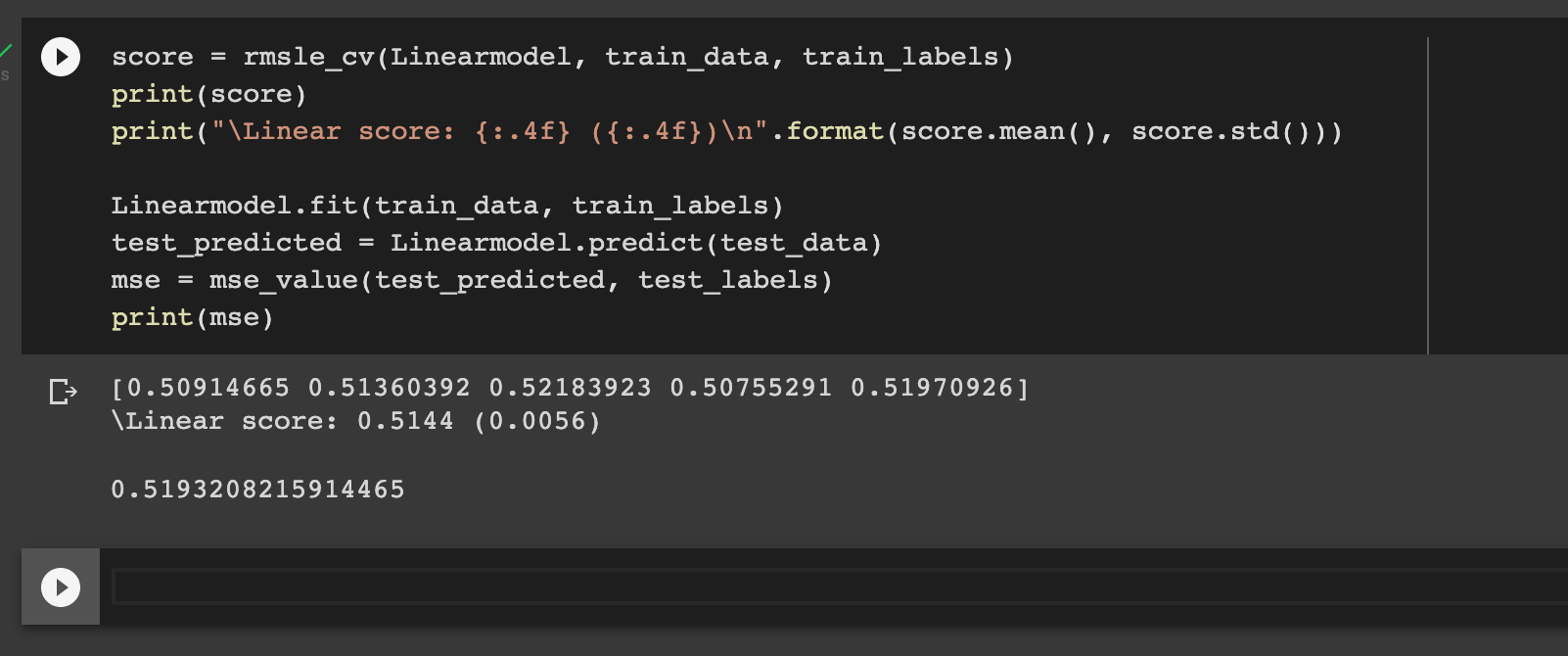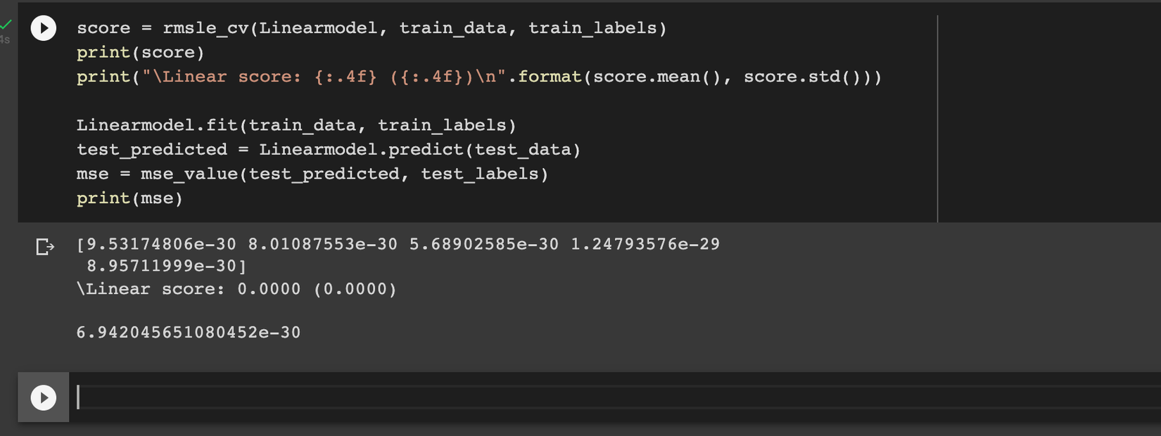 ps: em có đính kèm 2 ảnh em thực hiện trên cùng 1 bộ train và test set trên Linear Regression nhưng lại cho ra 2 kq khác nhau của